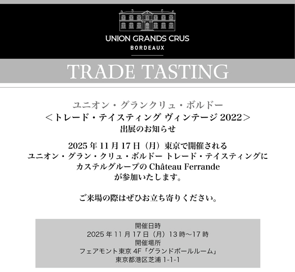 ユニオン・グラン・クリュ・ボルドー トレード・テイスティング 2025に出展いたします。